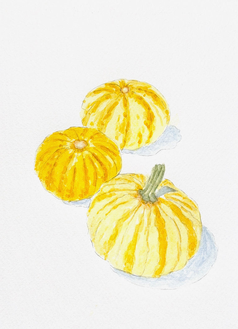 Fall Harvest Pumpkins Original Pen and Watercolor Sketch 8x10 140 lb cp white mat