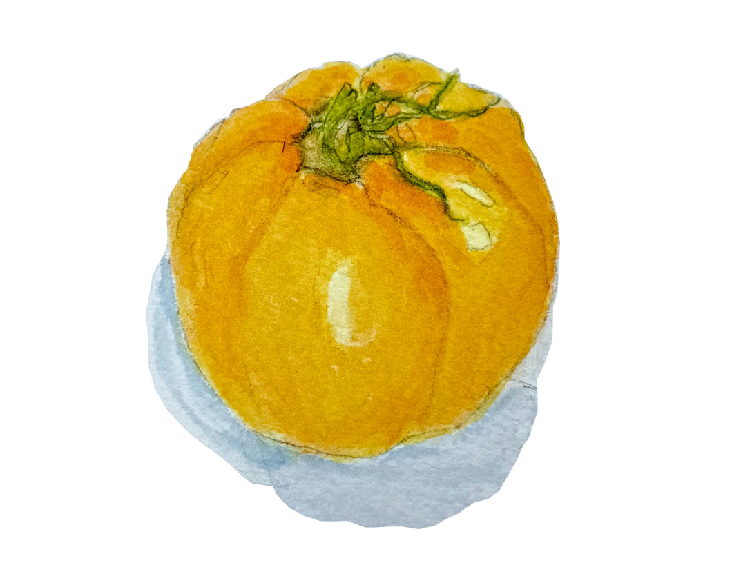 Yellow Tomato Original Watercolor signed 8x10 with white mat - 140 lb cold press